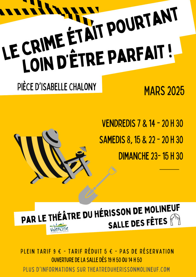 Tous les ans, généralement au mois de mars, nous jouons des pièces aux styles différents : comédies, policier, café-théâtre… Certaines années, un spectacle de plein air vous est proposé, soyez à l’affût des spectacles à l’affiche !